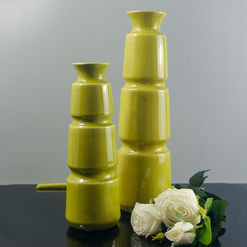 This 1970's inspired decorative vase set for artificial or fresh flowers can be used alone in vases as decorative pieces such as living room, dining room, bedroom, bathroom, table, bookshelf, mantelpiece, porch, etc.